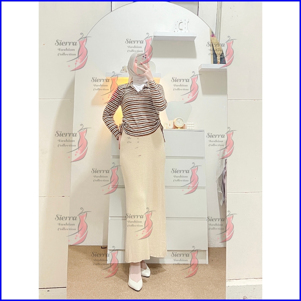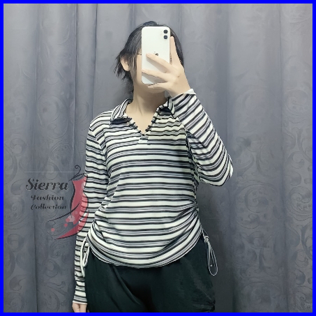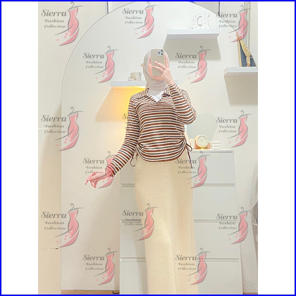 Atasan Kerah V Serut Lengan Panjang Knit Rib Premium