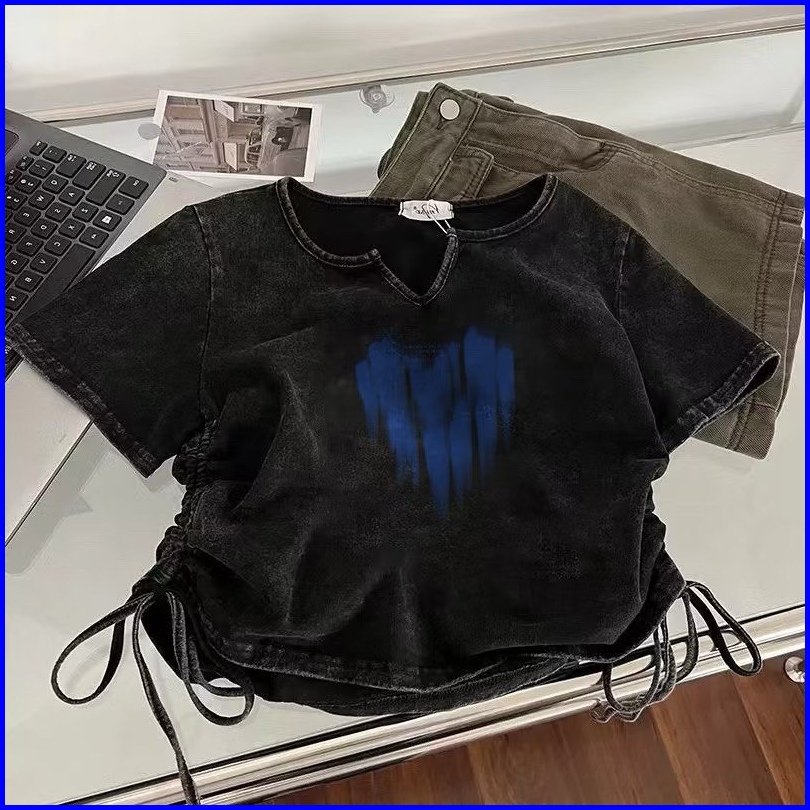 Kaos Oversize Wanita Crop Blue Love Full Print Ld 108 P 40