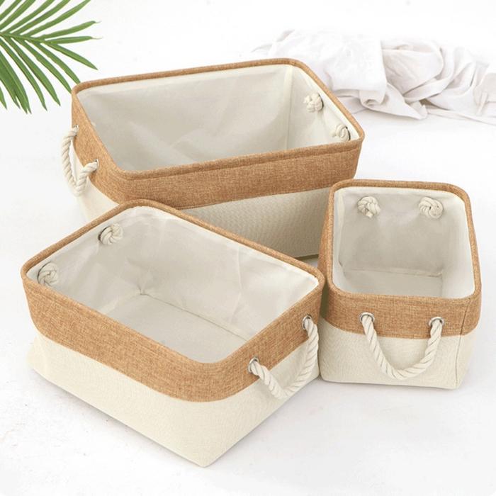 Keranjang Penyimpanan Kotak Rotan kain putih /keranjang rotan cover pot cantik /Keranjang Rotan