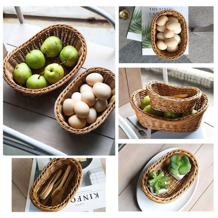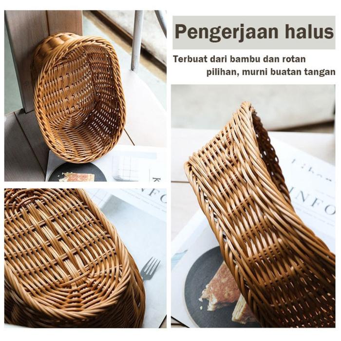 Nampan Rotan Bulat Keranjang Keranjang Rotan Keranjang Roti Keranjang Penyimpanan Barang Multifungsi