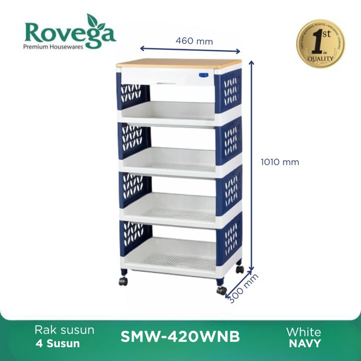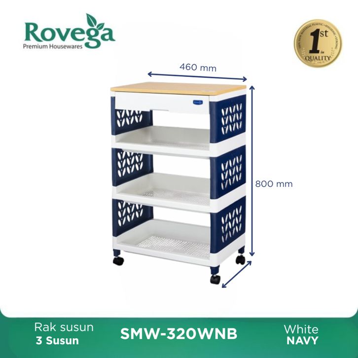 Rovega Supra Rak Susun Plastik Premium Lebar With Laci & 4 Roda 3 Susun & 4 Susun SMW-320 / SMW420