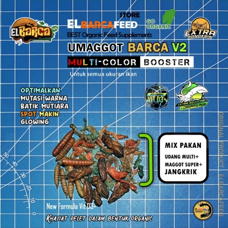 UMAGGOT BARCA V2 Mix Xtra Jangkrik Pakan ikan channa predator optimalkan mutasi warna ikan 30gr