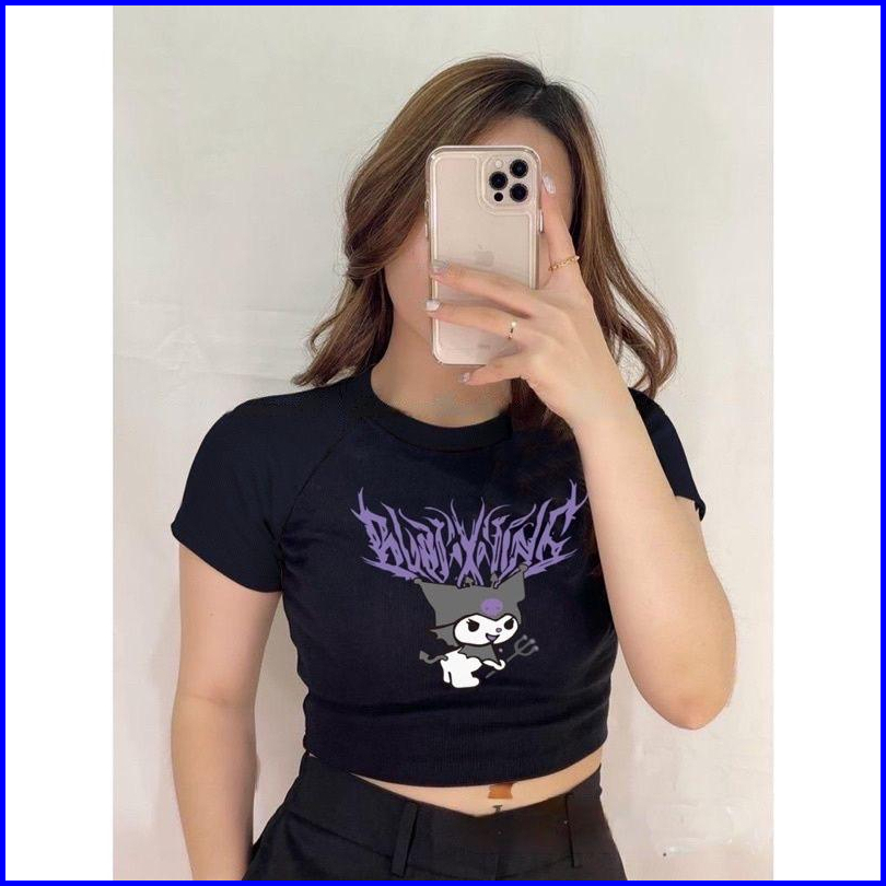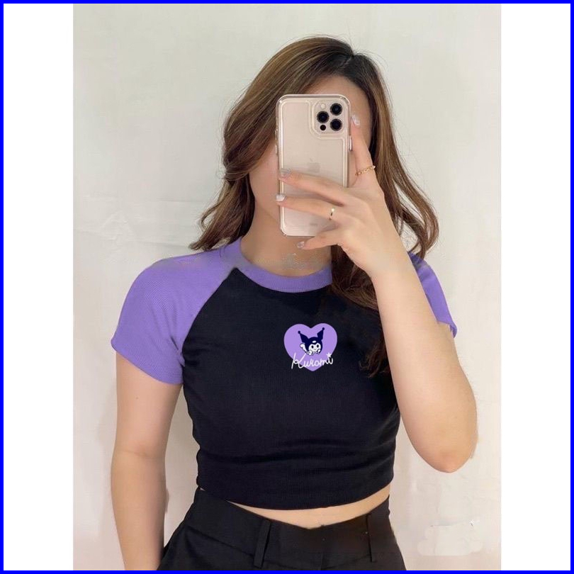Crop Top Wanita Kuromi Purple Knit Rib Ld 88 P 40