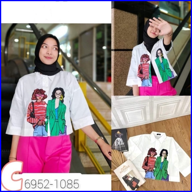 Kemeja Bestie Crop Top Katun Twiscone Allsize