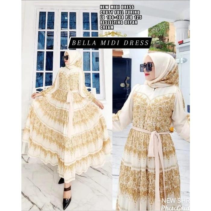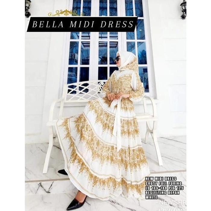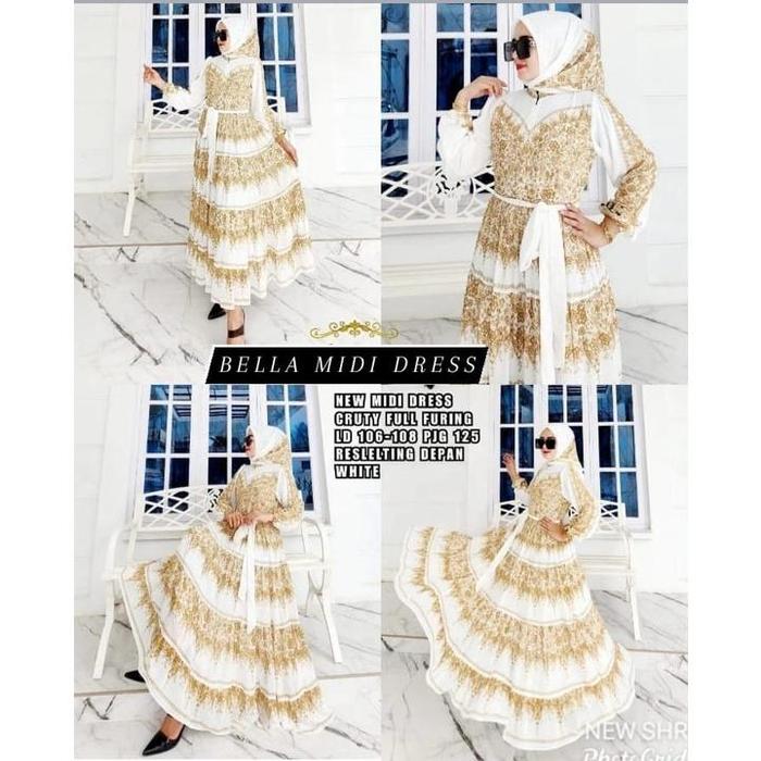 BELLA MIDI DRESS SIFON CERUTY MUSLIM PANJANG WANITA PUTIH