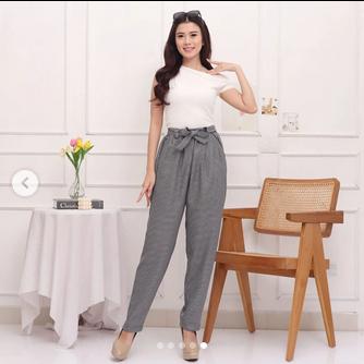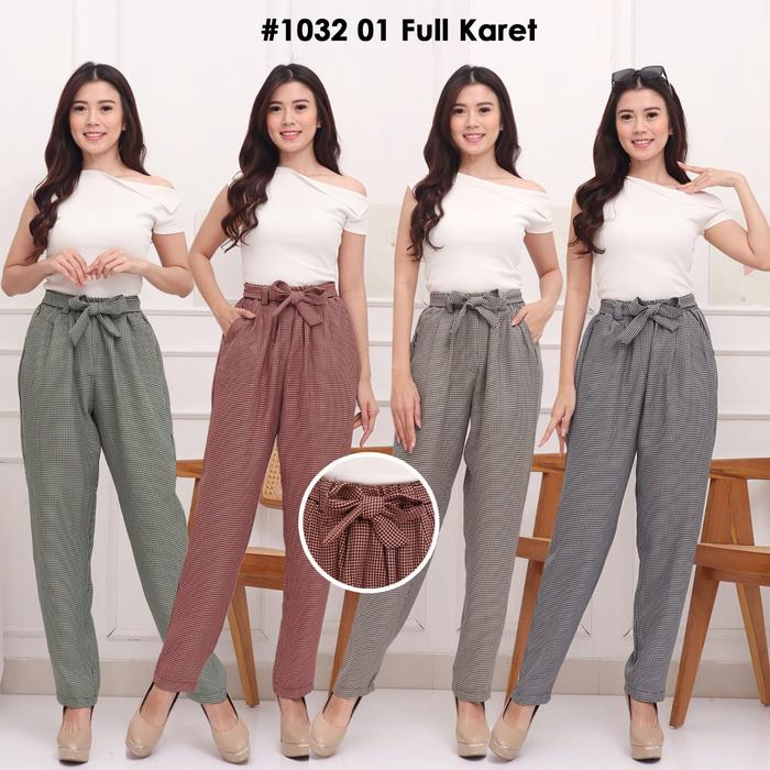 CELANA PANJANG KANTOR HIGHWAIST HW SLIM FIT SIZE L XXL BELAKANG KARET BASIC KATUN LEMBUT WANITA COKSU