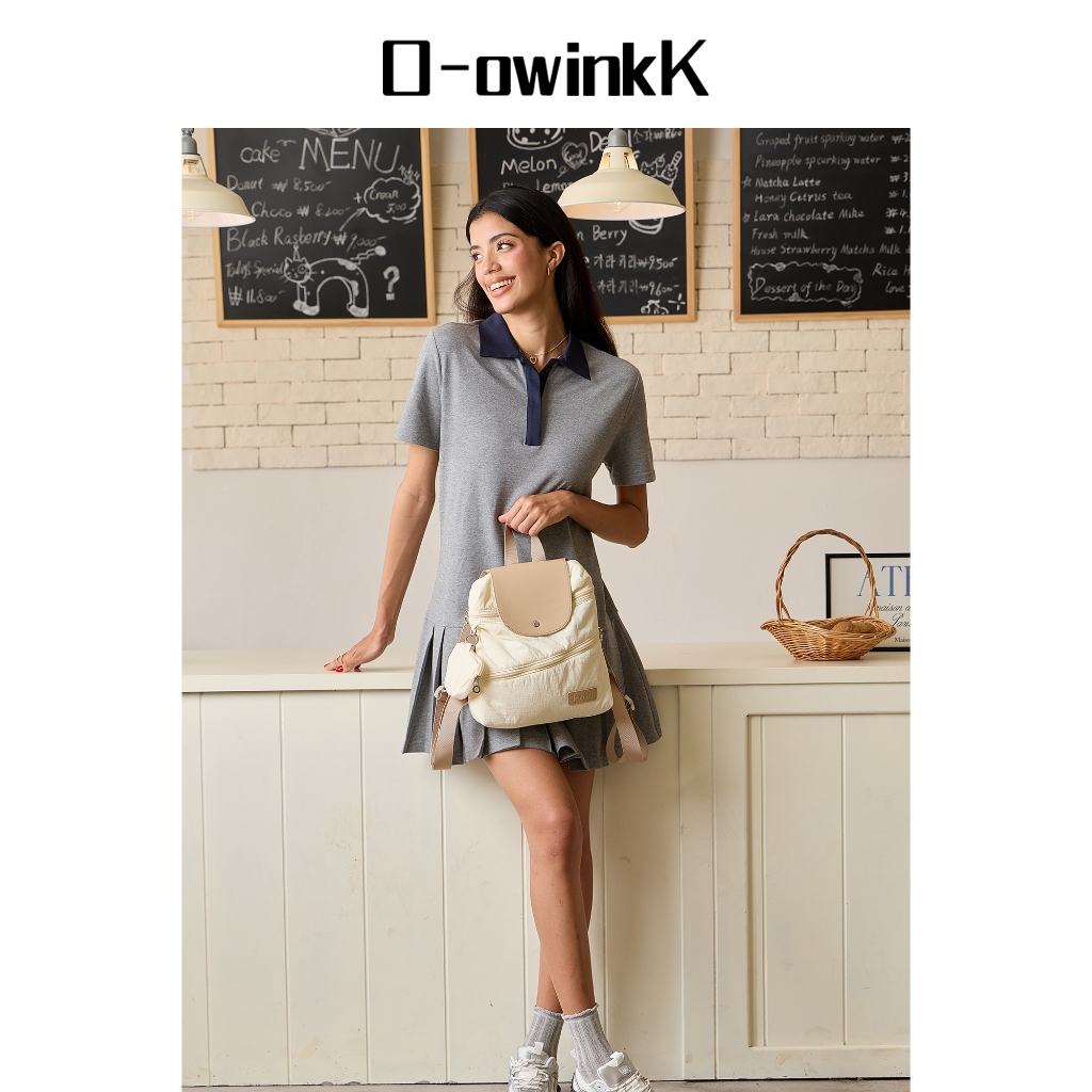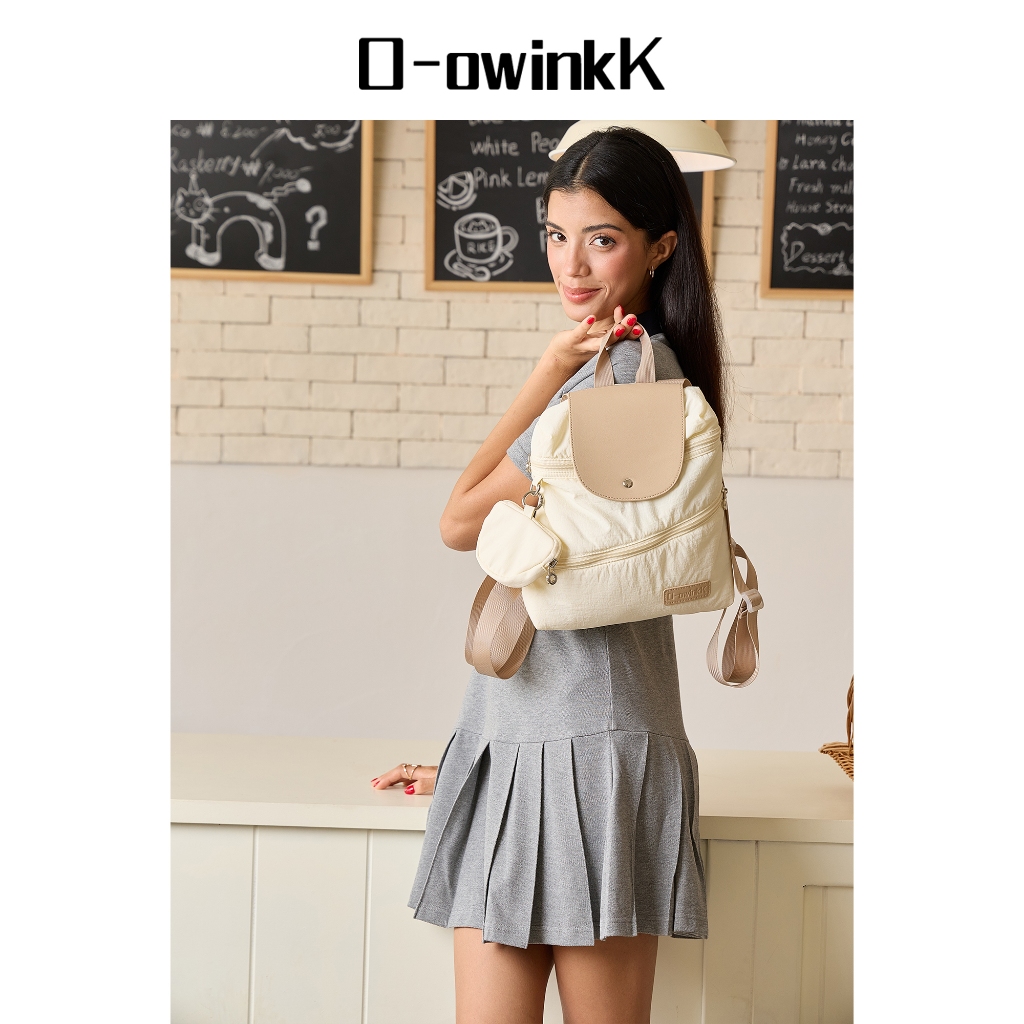 O-owinkK Tas Pundak Wanita Tas Ransel Kecil Berkerut Awan Tas Perjalanan Ringan Gaya Sekolah Korea Lucu