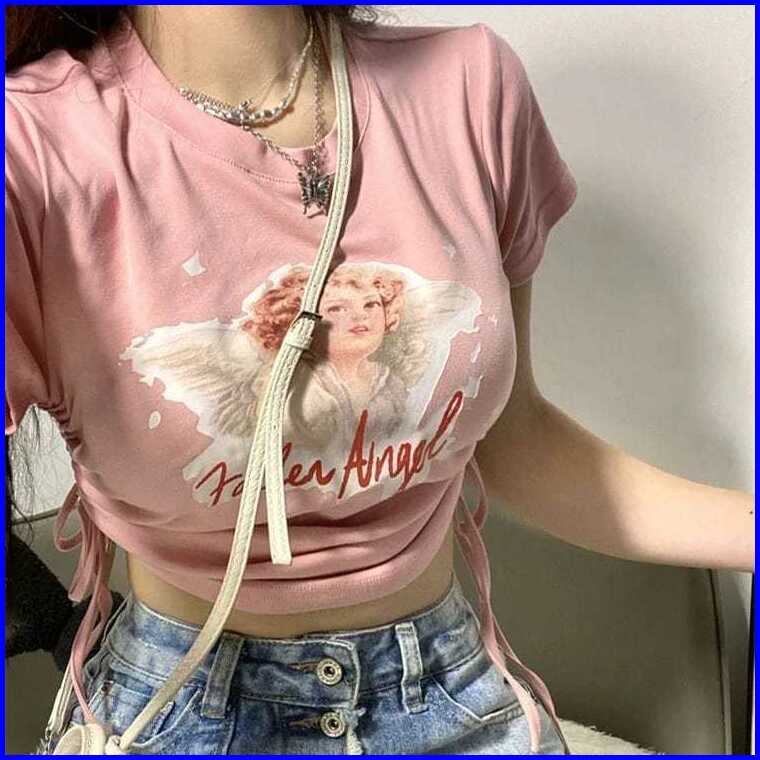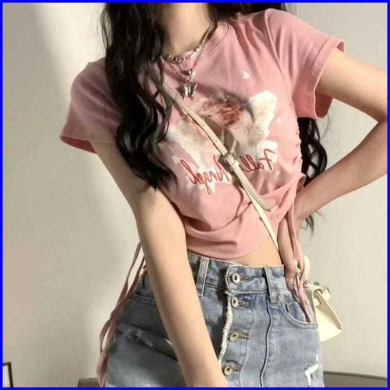 Crop Top Wanita Serut Fallen Angel Knit Rib Ld 88 P 40