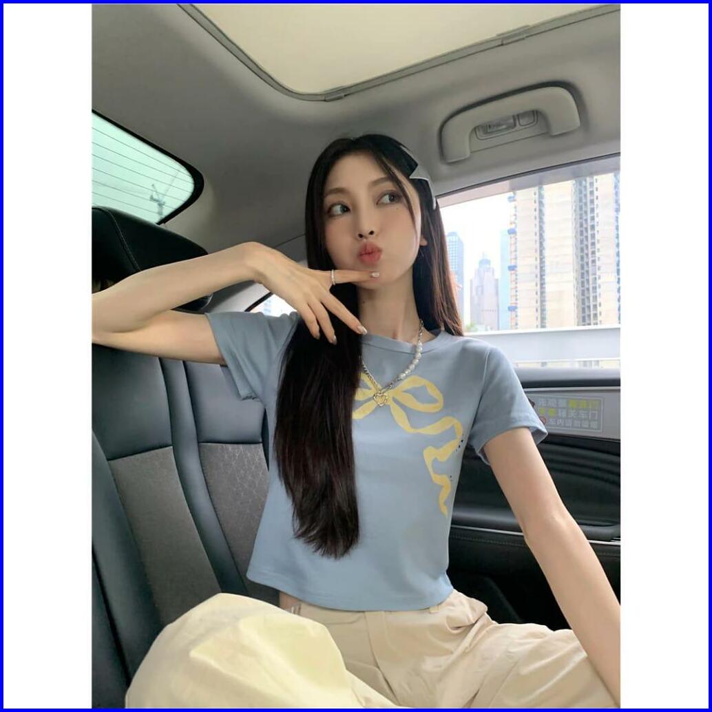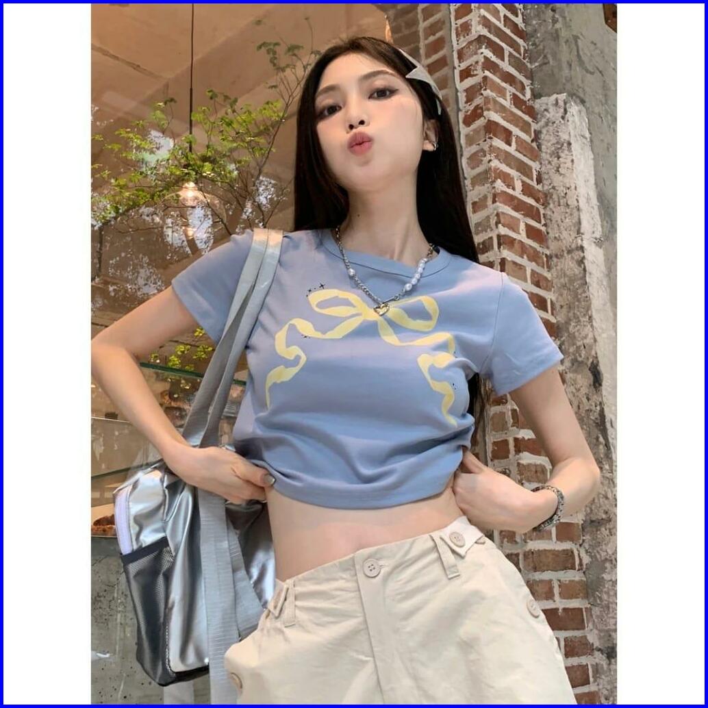 Crop Top Wanita Bow Knit Rib Rajut Halus Ld 88 P 40