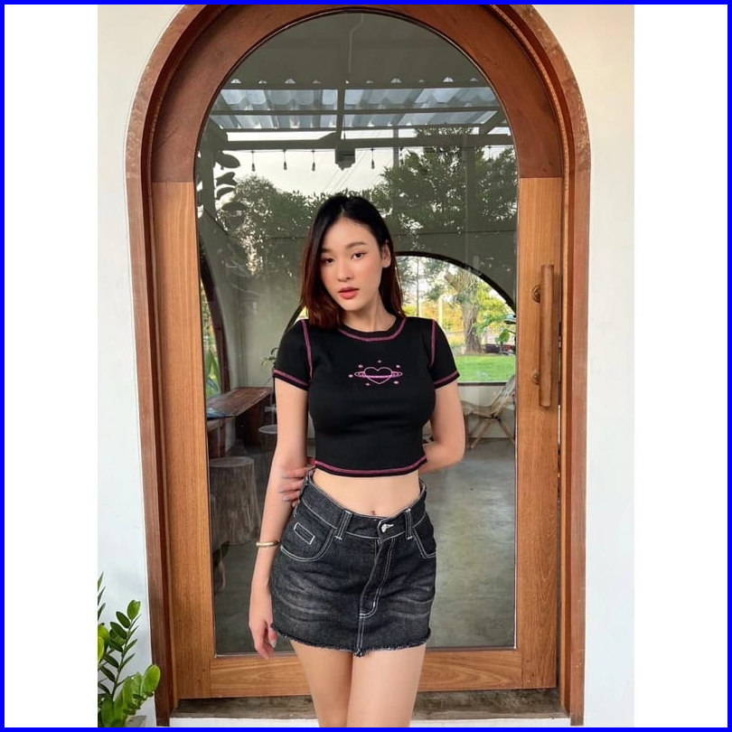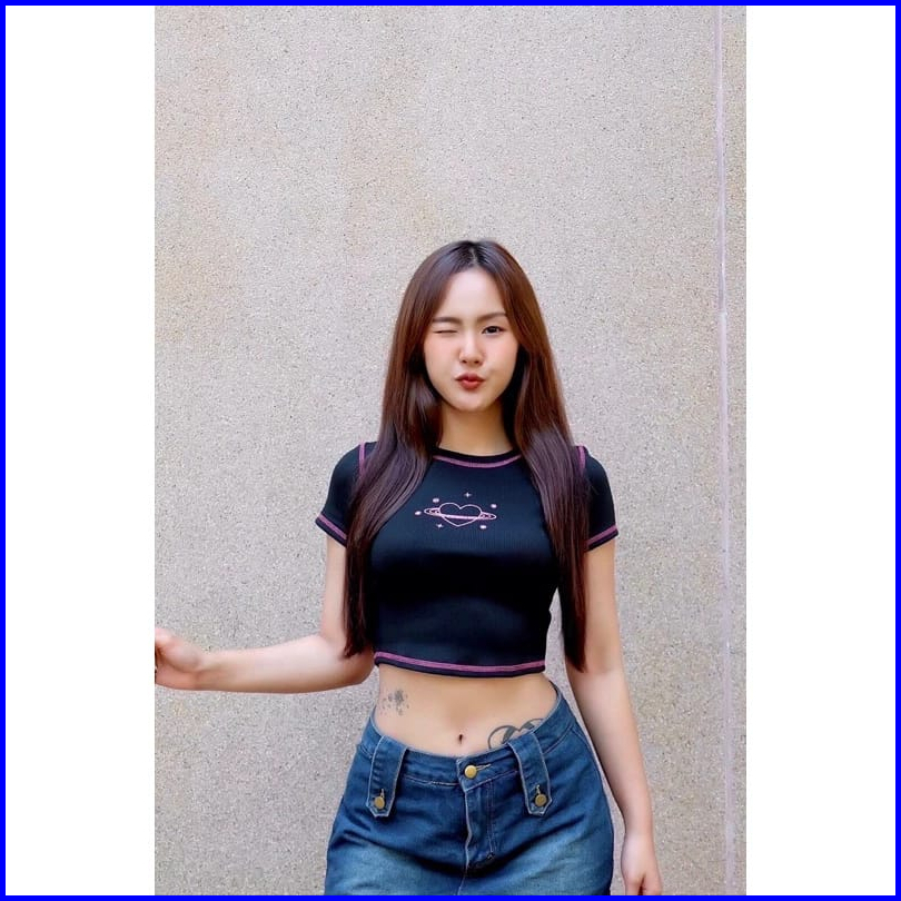 Crop Top Wanita Planet Love Knit Rib Ld 88 P 40