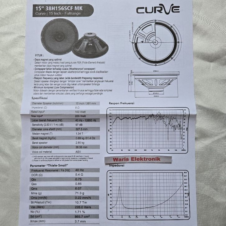 Speaker 15 inch Curve 38H156SCF MK 200W