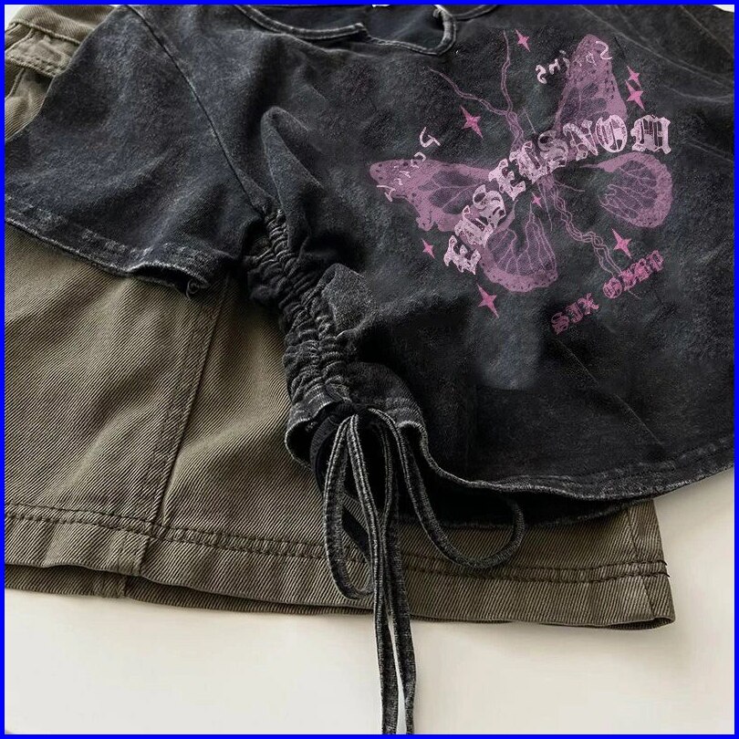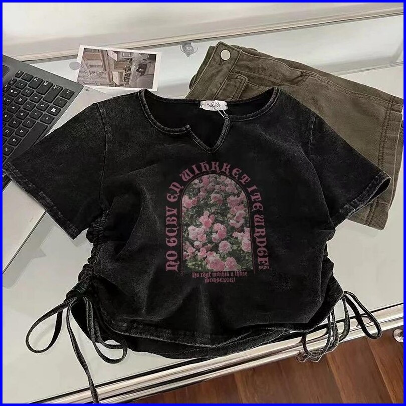 Kaos Oversize Wanita Crop Serut Big Flower Full Print Ld 106 P 42