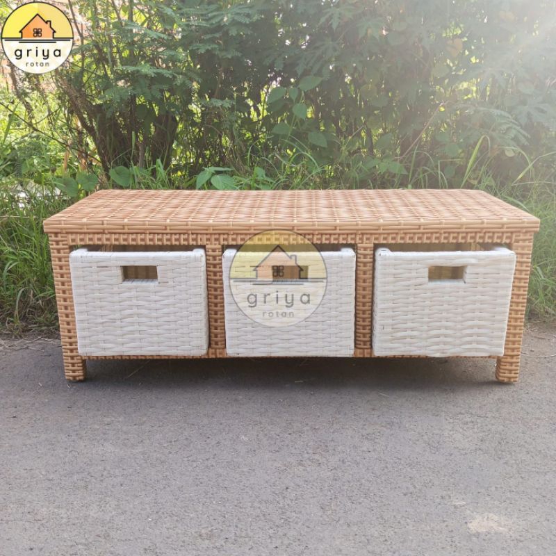 Lemari Plastik Susun 3 Minimalis Rotan Sintetis