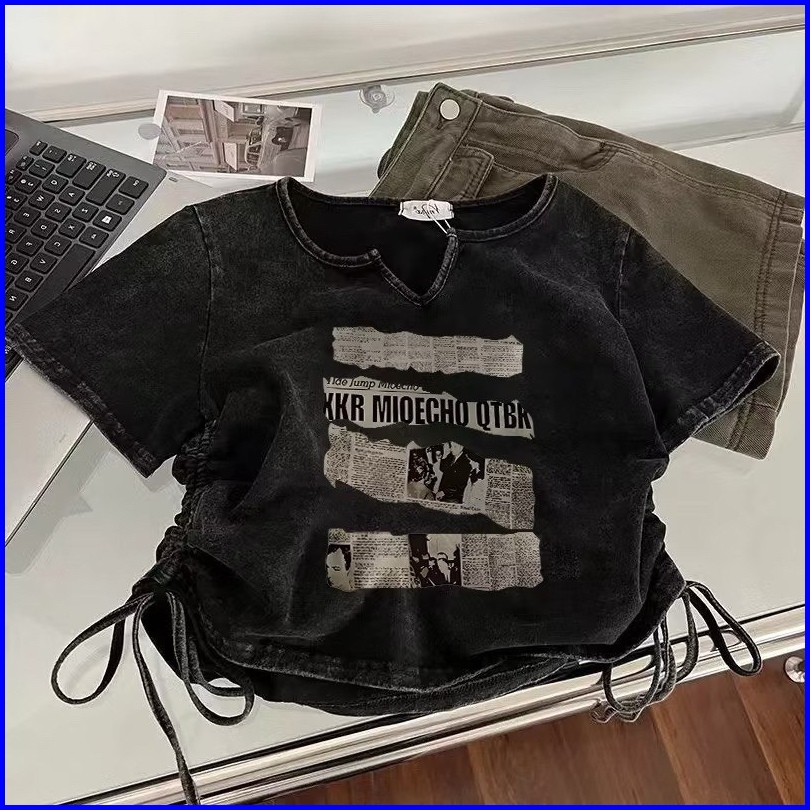 Kaos Oversize Wanita Crop Serut Aton Full Print Ld 108 P40