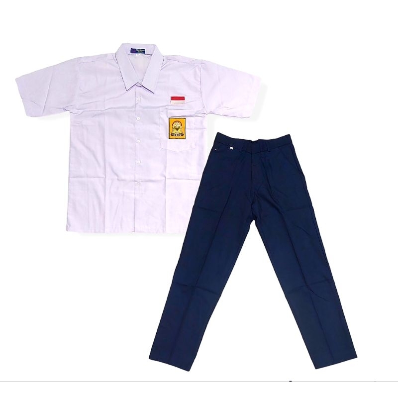 setelan seragam sekolah lengkap SMP laki laki baju pendek celana panjang