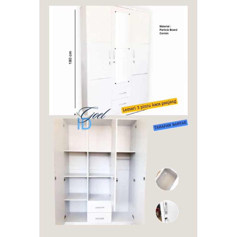(PROMO TOKO BARU) LEMARI3PINTU PUTIH / LEMARI 3 PINTU PUTIH MINIMALIS BANDUNG / LEMARI 3 PINTU PUTIH