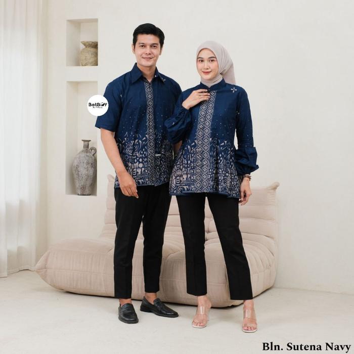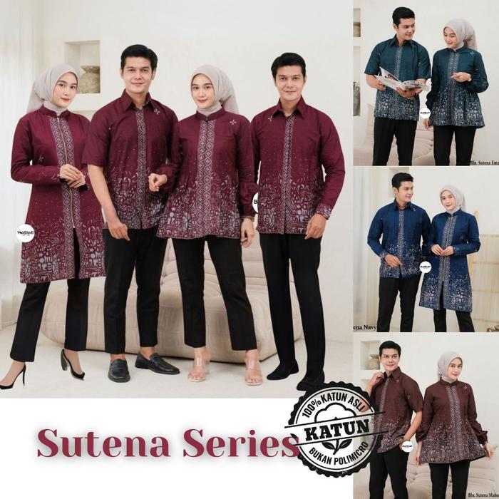 SUTENA SERIES BLOUSE HEM TUNIK KEMEJA BATIK COUPLE SERAGAM MODERN ATASAN BAJU KERJA WANITA OUTER BURGUNDY M