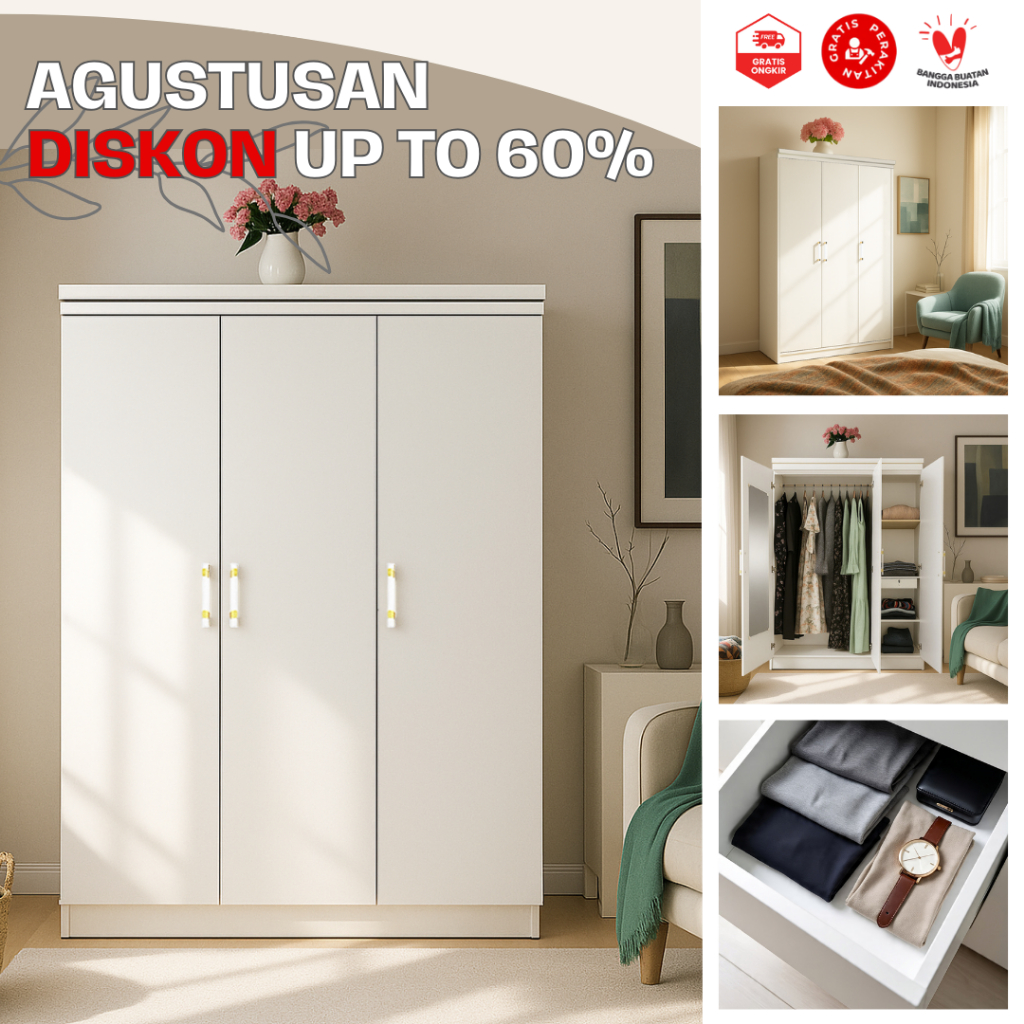 Harvest Furniture Lemari Baju Pakaian 3 Pintu GAMIS Aesthetic Estetik