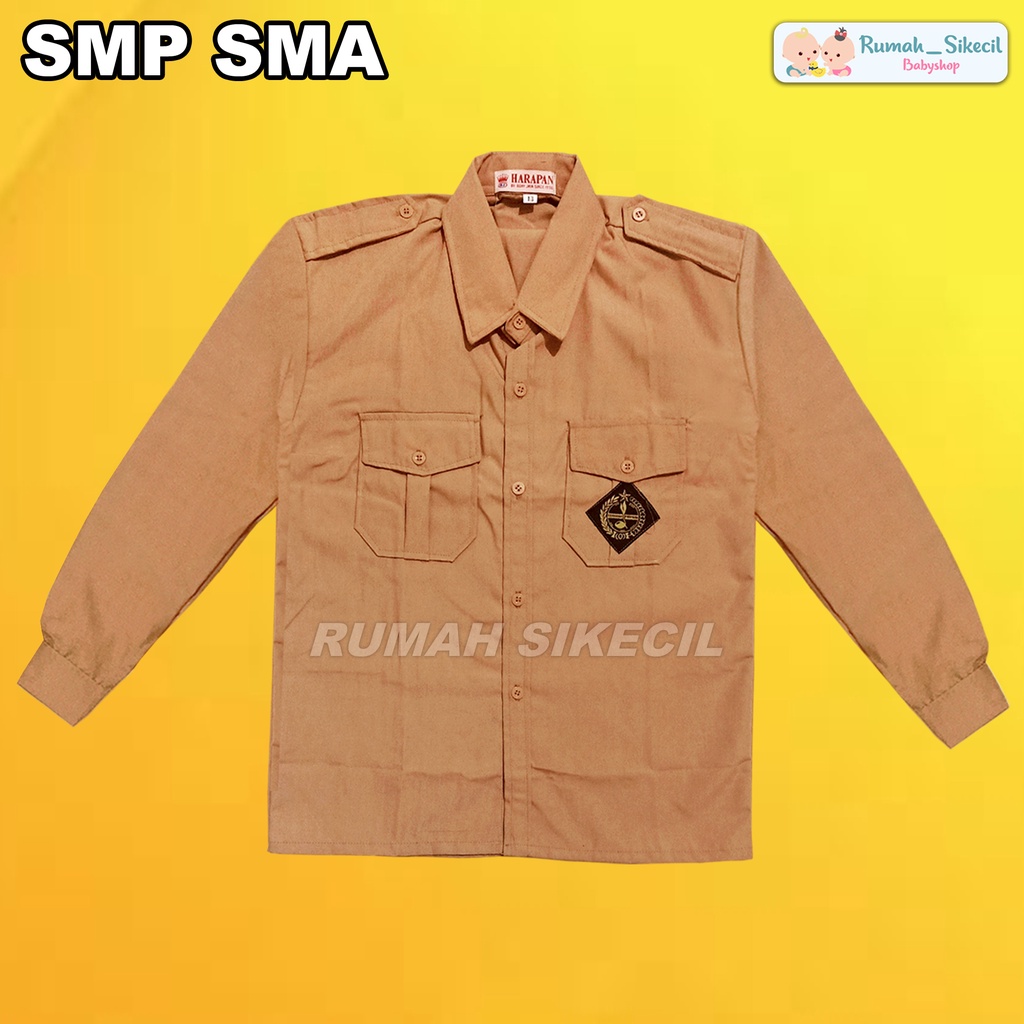 Baju Seragam Sekolah Putih Coklat Pramuka Panjang SMP MTS SMK SMA Kemeja Putih Lengan Panjang SMP SMA Anak Laki Laki Perempuan Unisex