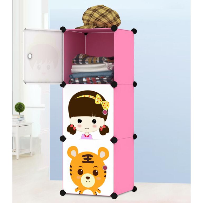 Lemari pakaian lemari plastik lemari baju anak rak buku rak topi 3 kotak/pintu/susun