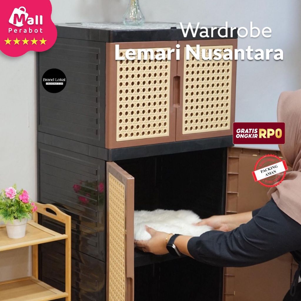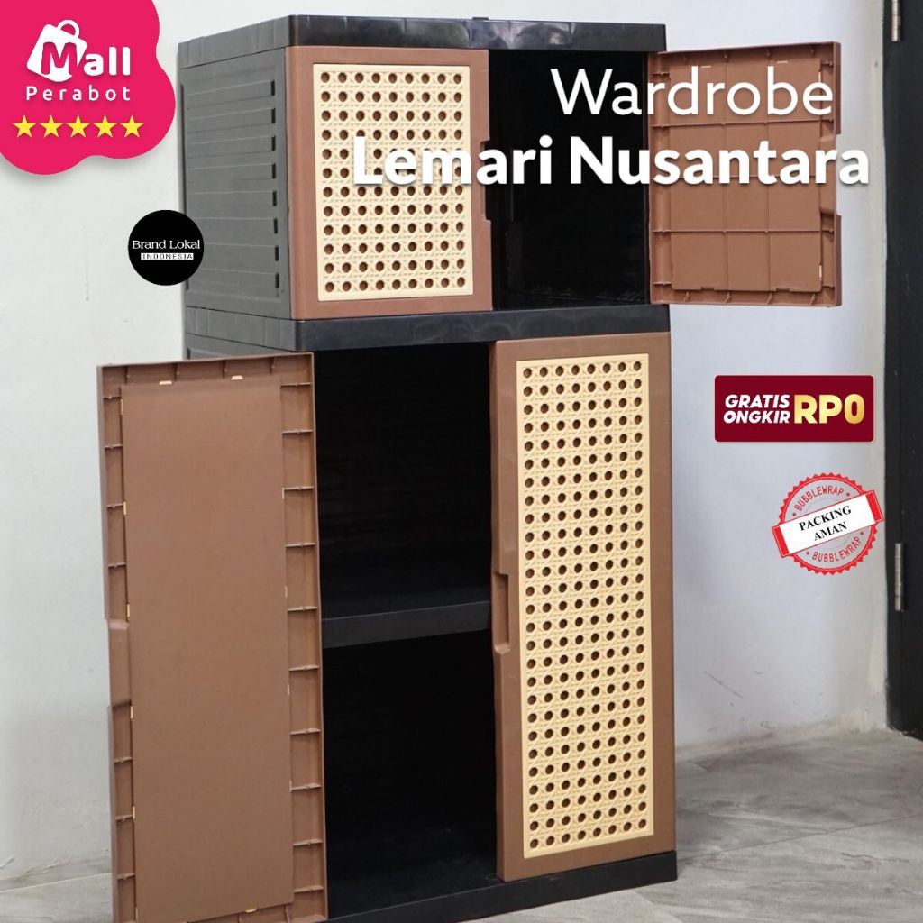 Mall Perabot Lokal | Lemari Pakaian Java 3 Susun Wardrobe D14M0NDS Plastik Persegi | Rak Baju Tingkat Jumbo Pintu Serbaguna Murah