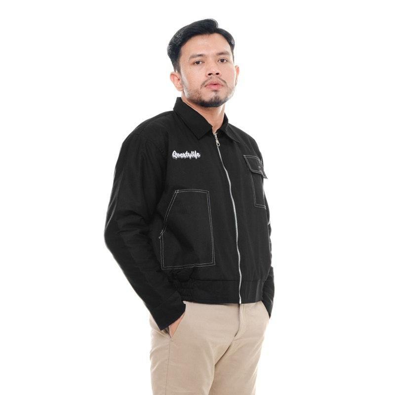 Qwertylife Boxy Work Jacket - People Hitam