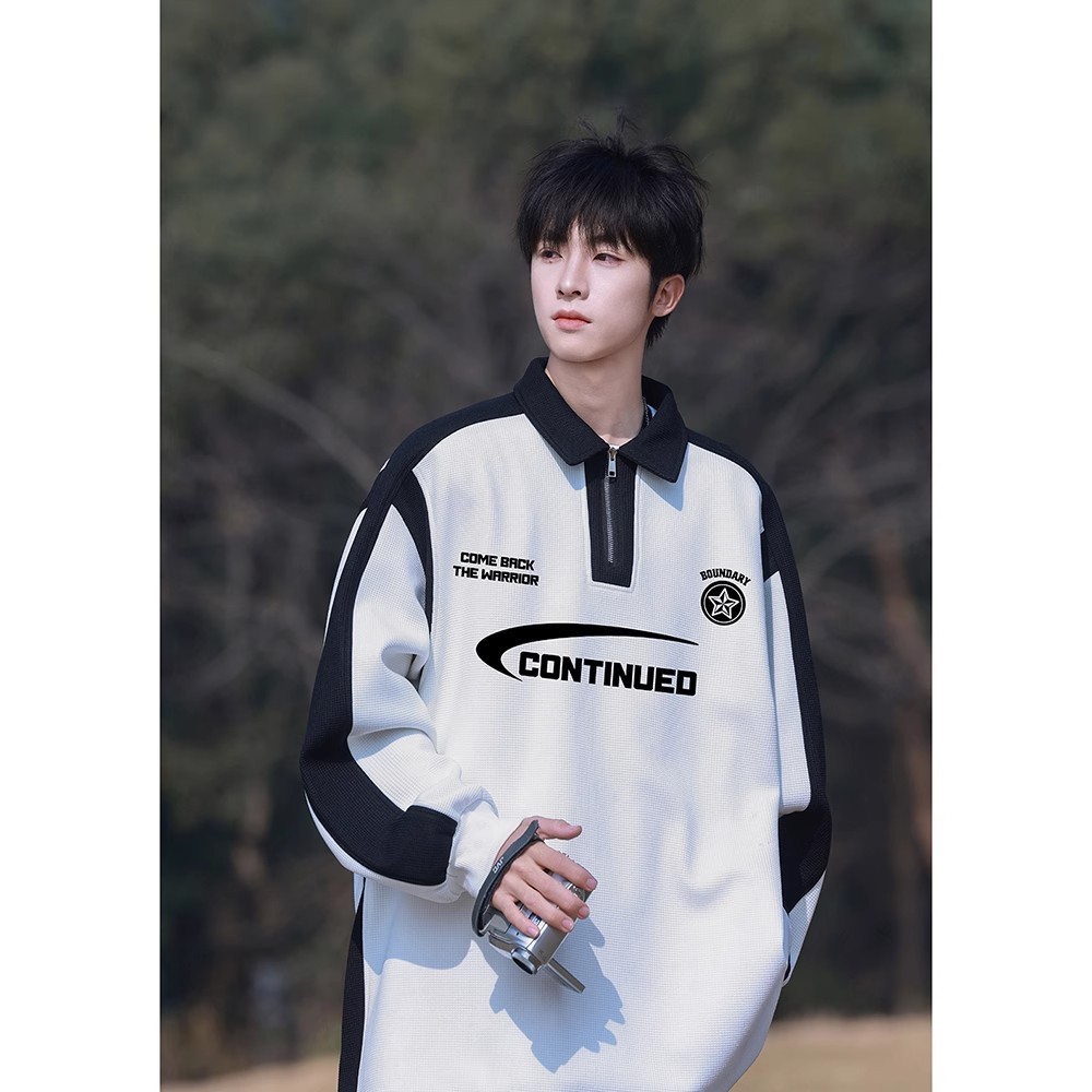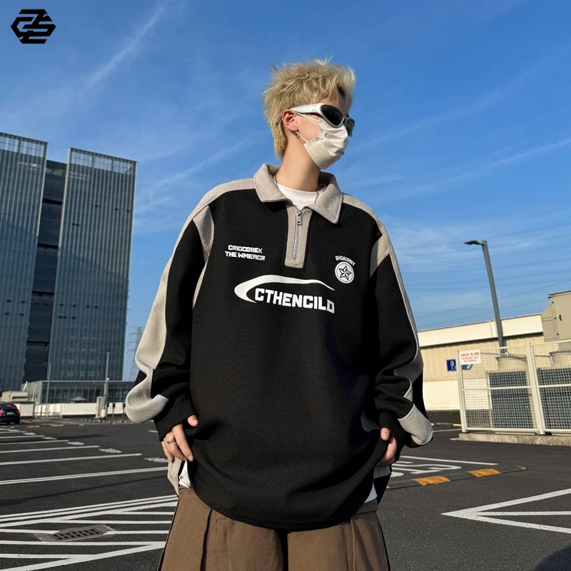 Sweatshirt Crewneck HALF ZIPP Rugby Kombinasi Pria Wanita sweater kerah uniseks Jaket Couple Pasangan lengan panjang pria korea style oversize pria Longsleeve Polo Rugby Regular