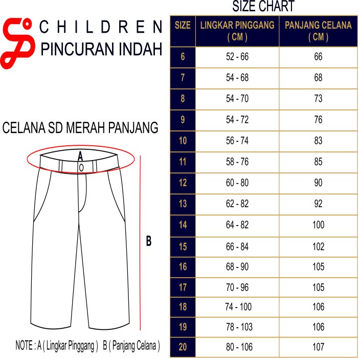Children Pincuran Indah - Celana SD Seragam Sekolah Merah Panjang