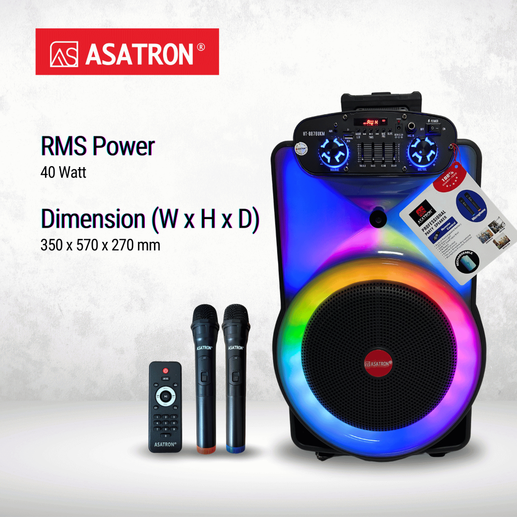 ASATRON HT-8878 UKM 12 INCH BLUETOOTH PARTY SPEAKER WITH 2 WIRELESS MIC ORIGINAL ASATRON OFFICIAL STORE