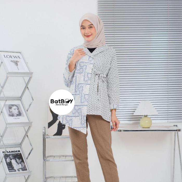 COUPLE SHAYNA SERIES BAJU BATIK COUPLE PASANGAN TERBARU BAJU ATASAN WANITA KEKINIAN BLOUSE WANITA HEM PRIA LENGAN PENDEK BLOUSE B