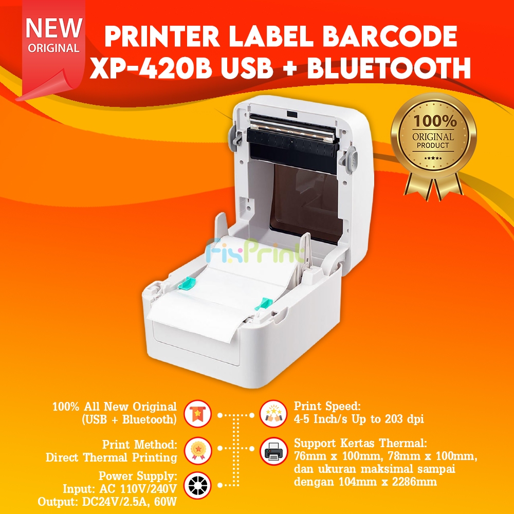 XPRINTER Printer Bare Thermal XP-420B / BI-420B XP420B Putih XP-4601B 4601B Hitam Printer Xantri Thermal Label BT-112 108mm