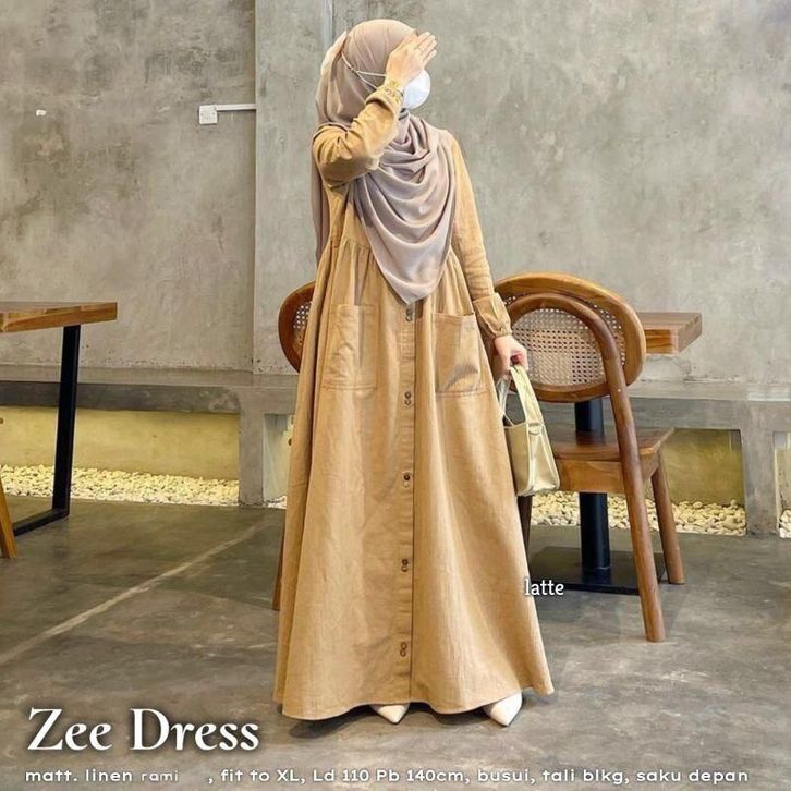 Femes Shani Dress Maxy Wanita Muslim Matt Linen Rami Polos Basic Premium