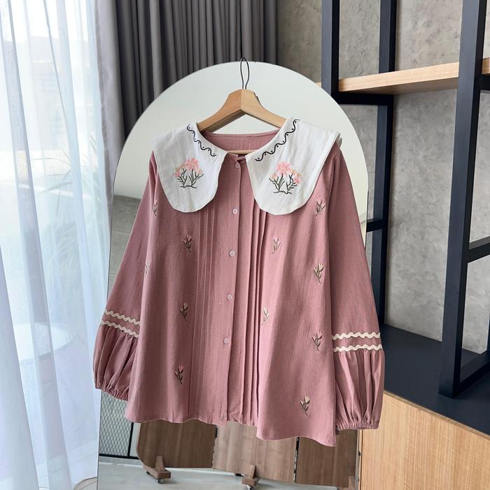 Baju Kemeja Wanita/Rok Wanita By.HANA 389 Kemeja Lipit Polos Bordir Atasan Panjang Wanita Baju