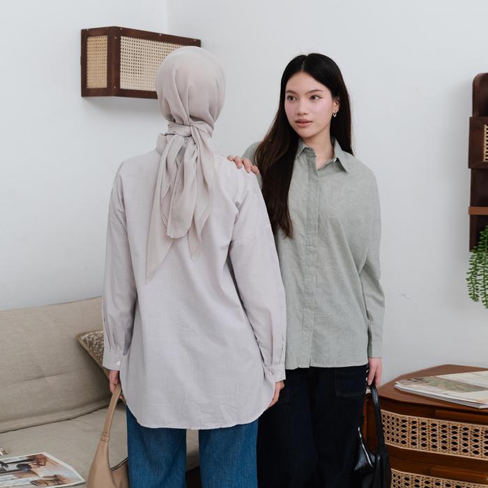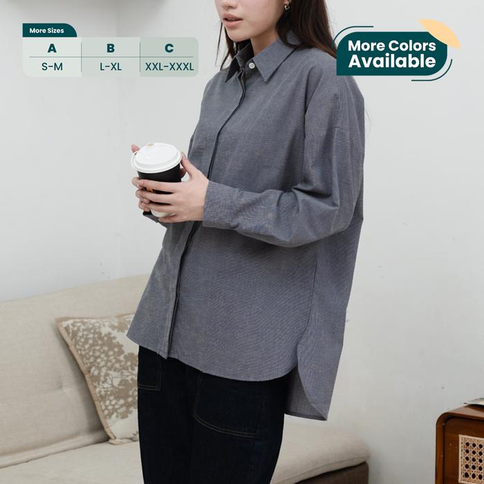 Baju Kemeja Wanita/Rok Wanita Ixora Veda Oversized Shirt - Kemeja Wanita Oversized Blouse Berkancing