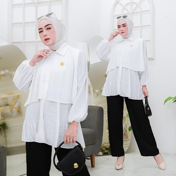Baju Kemeja Wanita/Rok Wanita Calista Blouse Kemeja Pleats Atasan Wanita Oversize Kekinian Bahan