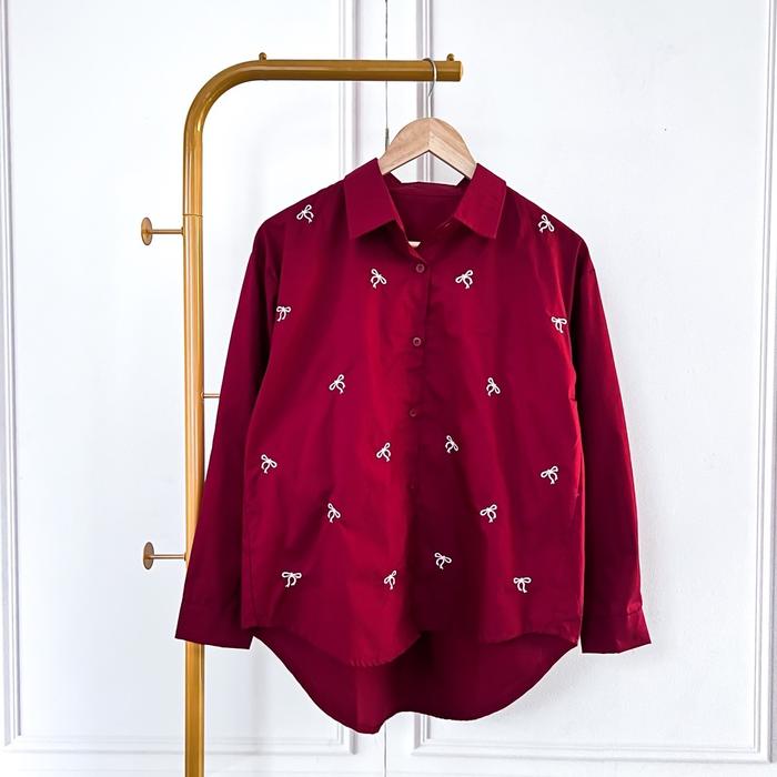 Baju Kemeja Wanita/Rok Wanita KEMEJA OVERSIZED BORDIR PITA KEMEJA KATUN WANITA KANTOR LD 125cm