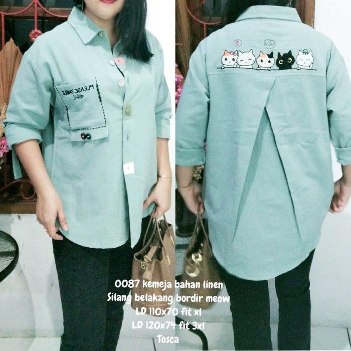 Baju Kemeja Wanita/Rok Wanita viral 0060 0087 95 kemeja linen /salur katun Xl & jumbo 3xl blkg