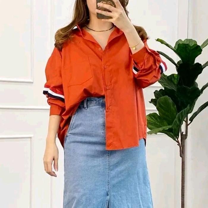 Baju Kemeja Wanita/Rok Wanita KEMEJA WANITA LIST YUMI BIGSIZE KATUN POPLIN OVERSIZED LD 130CM