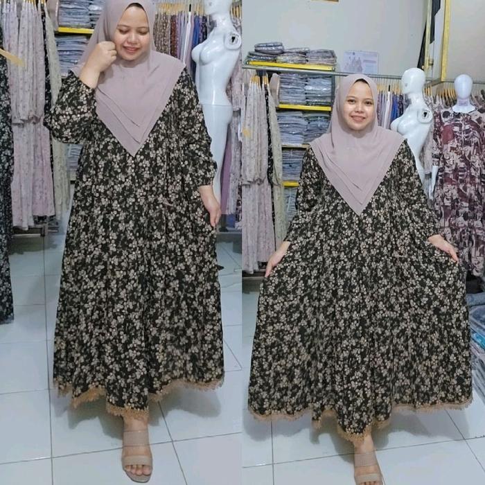 Baju Kemeja Wanita/Rok Wanita salvina midi Rayon Print renda bawah susun 1fgy6h5