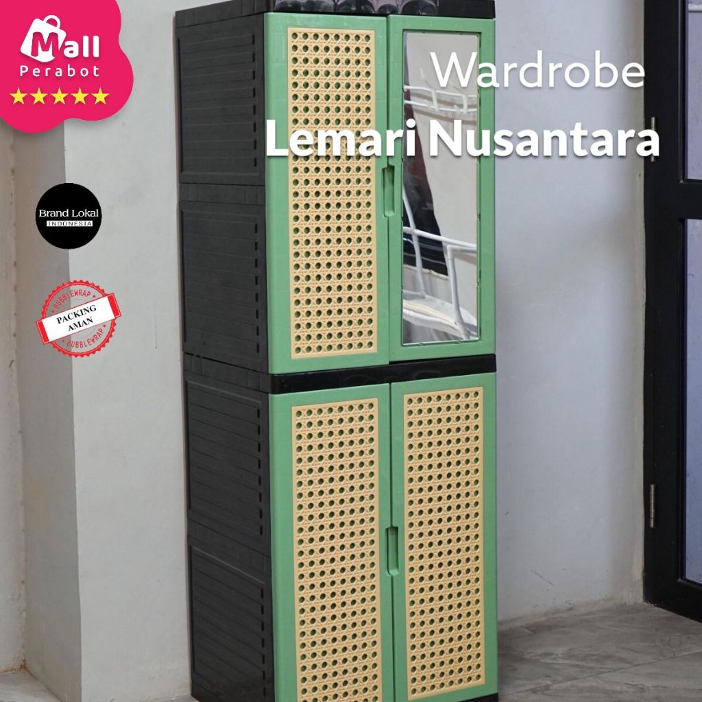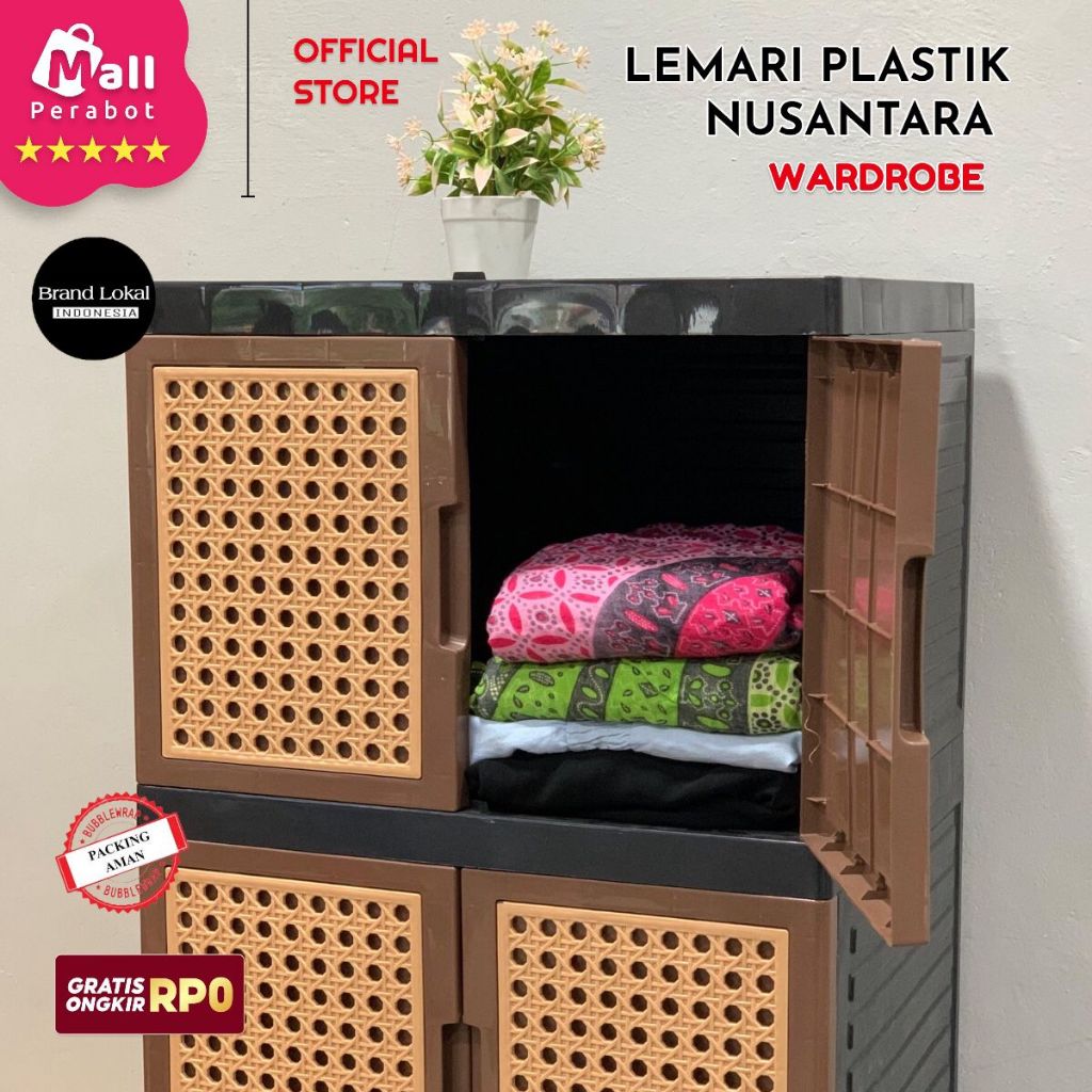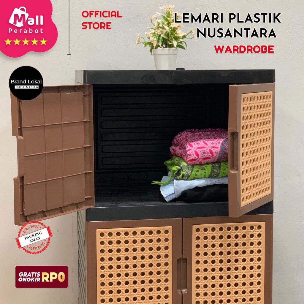 Mall Perabot Lokal | Lemari Pakaian Plastik Nusantara Wardrobe Persegi | Rak Baju Serbaguna Tingkat Jumbo Pintu Rotan