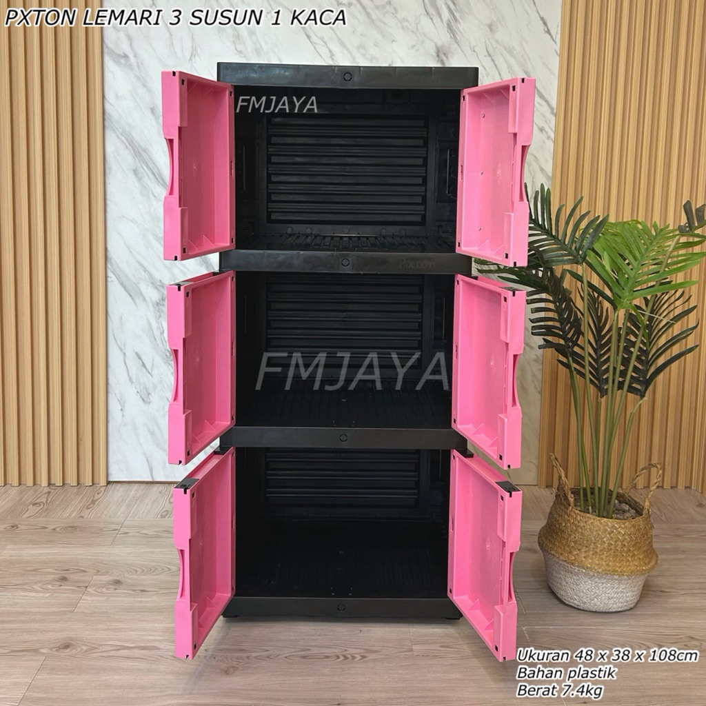 [FM] PXTON LEMARI 3 SUSUN 1 KACA & POLOS || LEMARI PLASTIK 3 TINGKAT SERBAGUNA || LEMARI PLASTIK TEBAL || LEMARI PAKAIAN PORTABLE