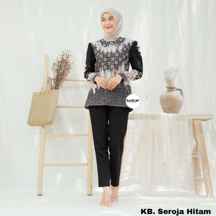 KB SEROJA SERIES BLOUSE HEM PAKAIAN BATIK COUPLE SERAGAM MODERN ATASAN BAJU KERJA KANTOR WANITA BLOUSE HITAM M