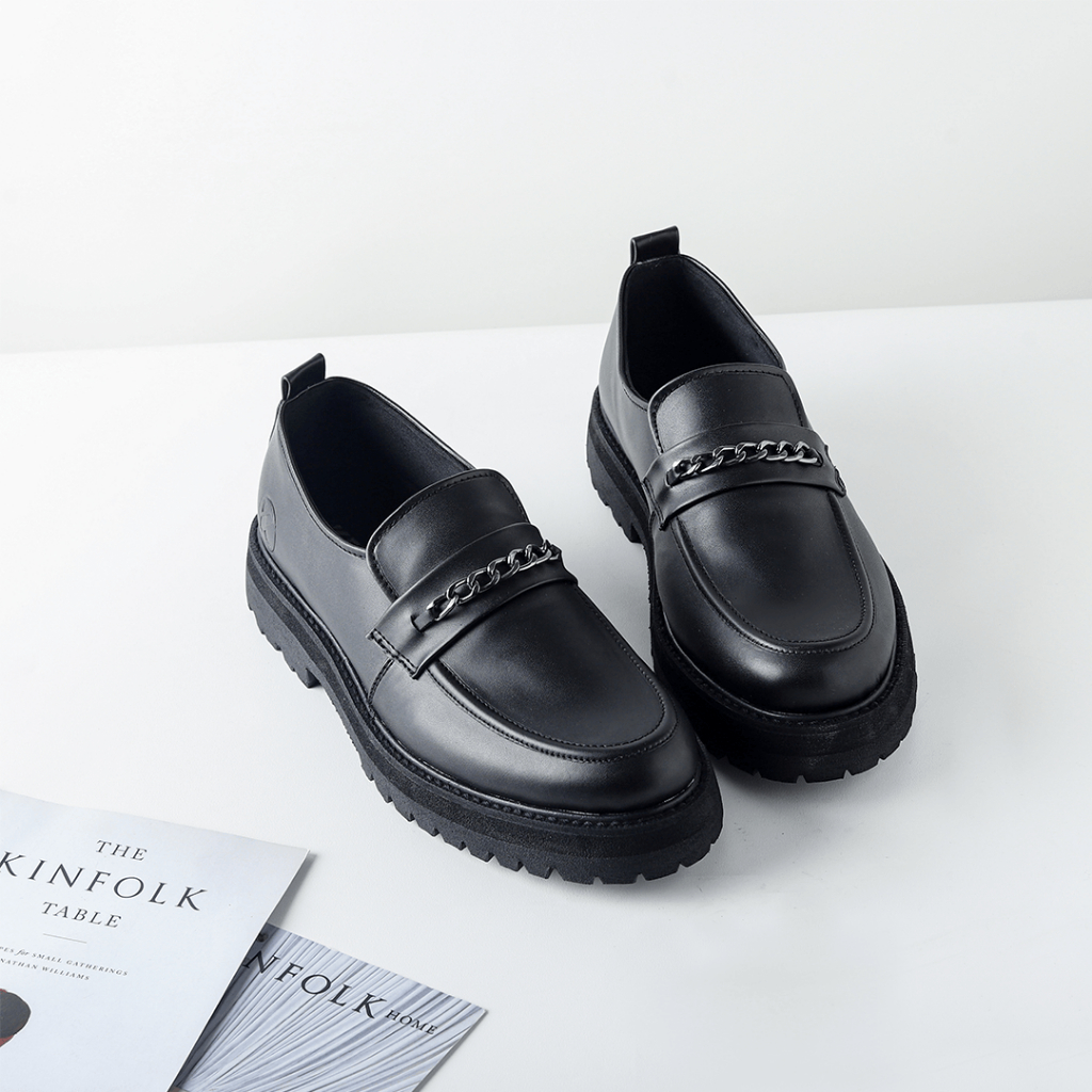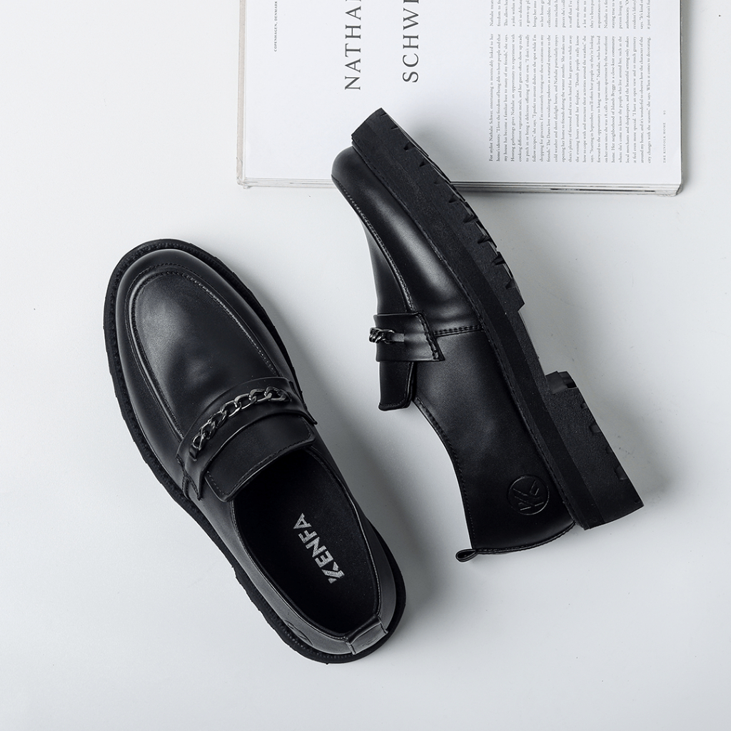 Kenfa - Benze Black Sepatu Formal Slip On Rantai Pria Wanita Pantofel Kuliah Kerja Kantor Tinggi