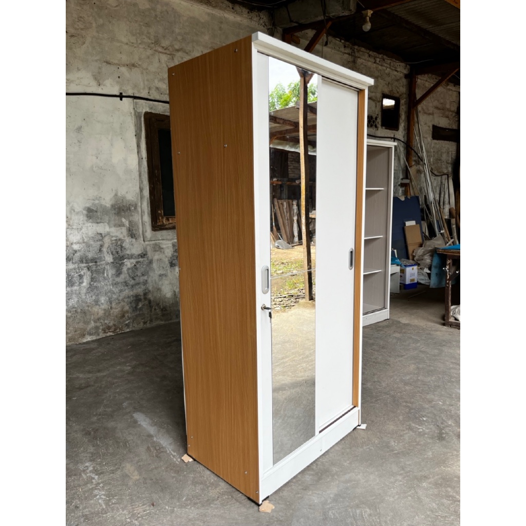 LEMARI SLIDING 2 PINTU BESI TERMURAH DESAIN MODERN MINIMALIS DENGAN KACA 4 SUSUN