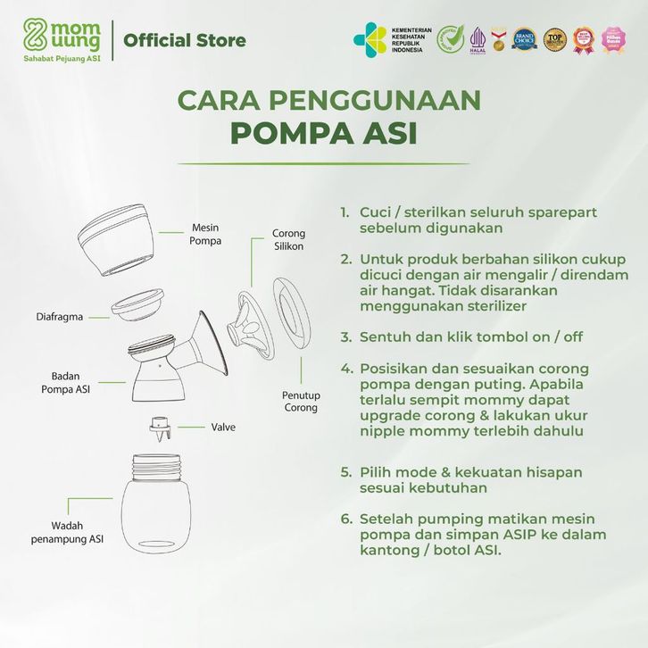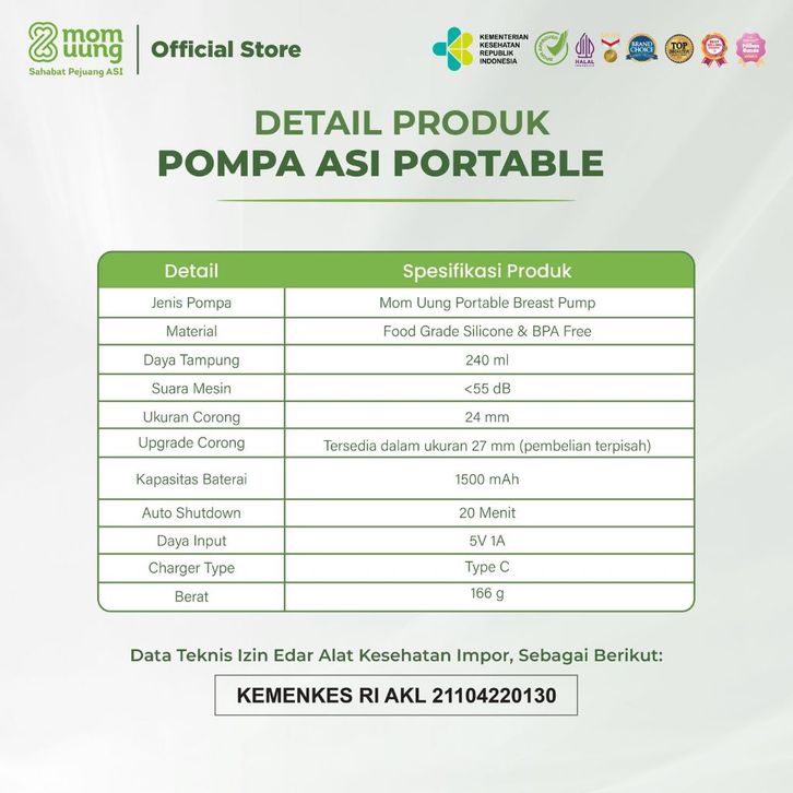 Mom Uung M1 Pro Portable Electric Breast Pump - Hisapan Lebih Kuat & Stabil - Medical & Hospital Grade