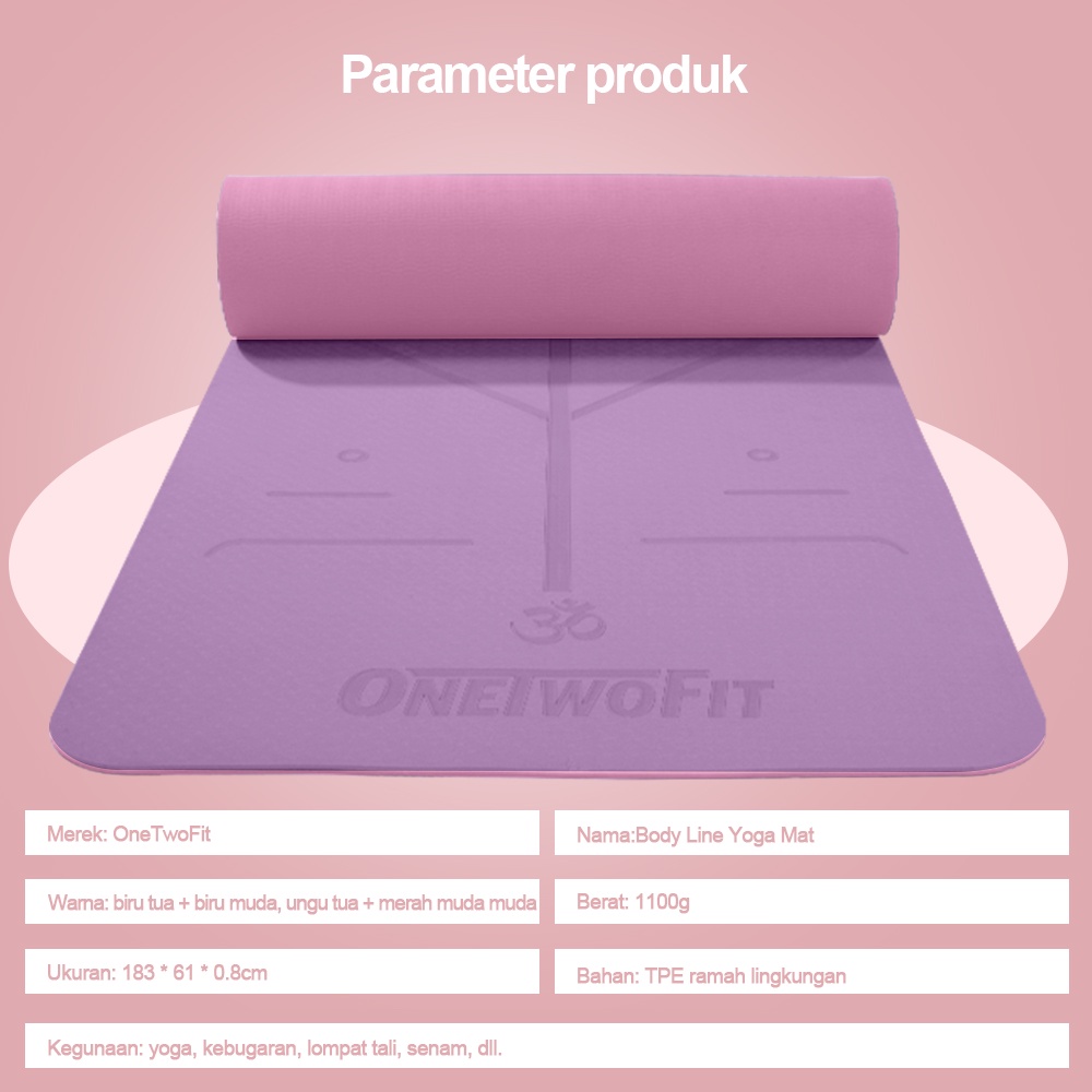 OneTwoFit TPE Yoga Mat 8MM Matras Anti licin Tebal Pilates Senam Premium Eco Friendly matras olahraga tebal