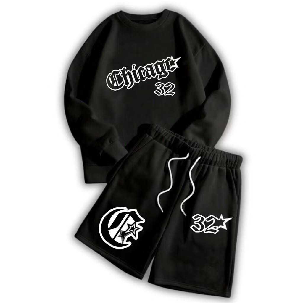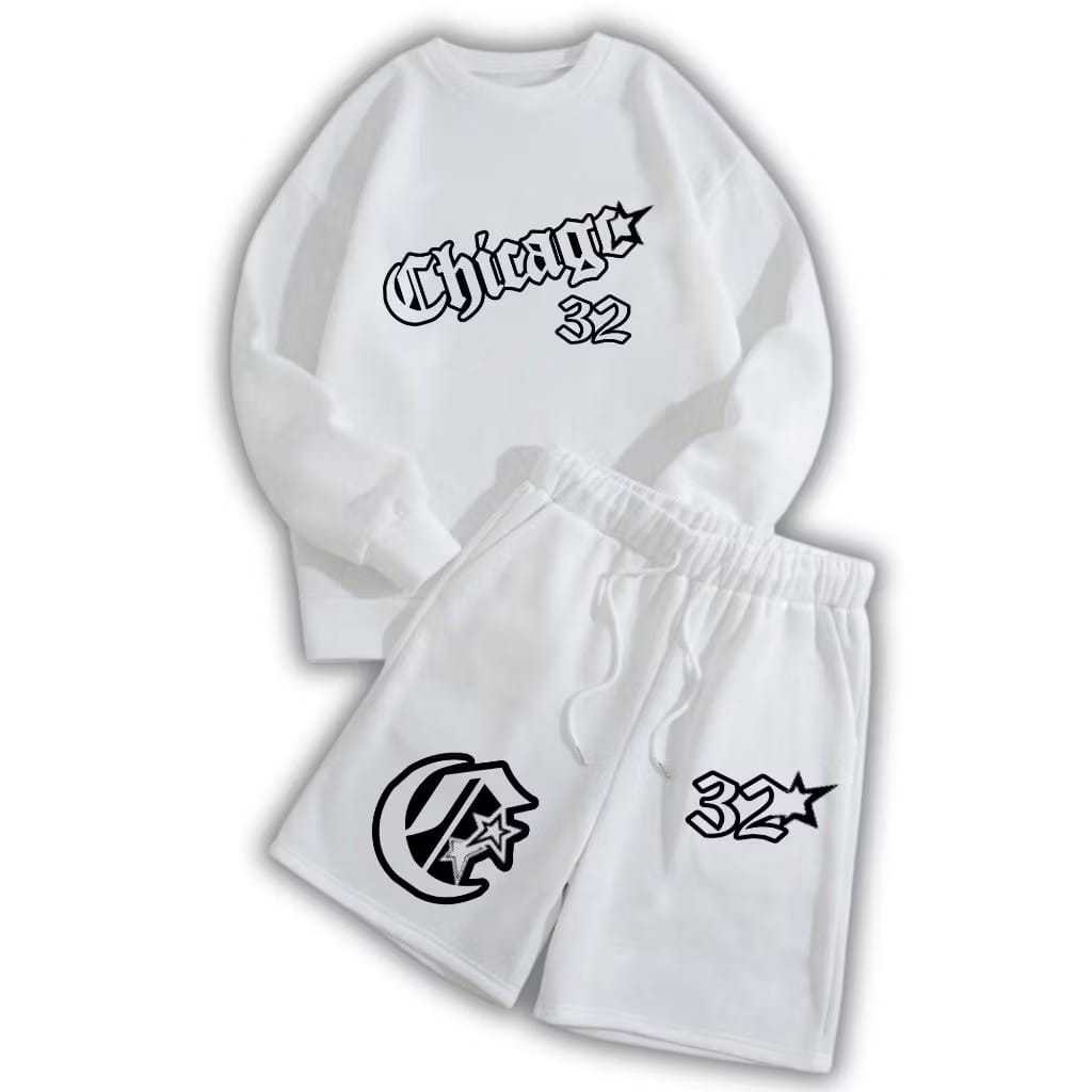 STREES One Set Crewneck & Shortpant CHICAGO Pria & Wanita Setelan Berbahan Kain Fleece Lembut Adem Size M-XL