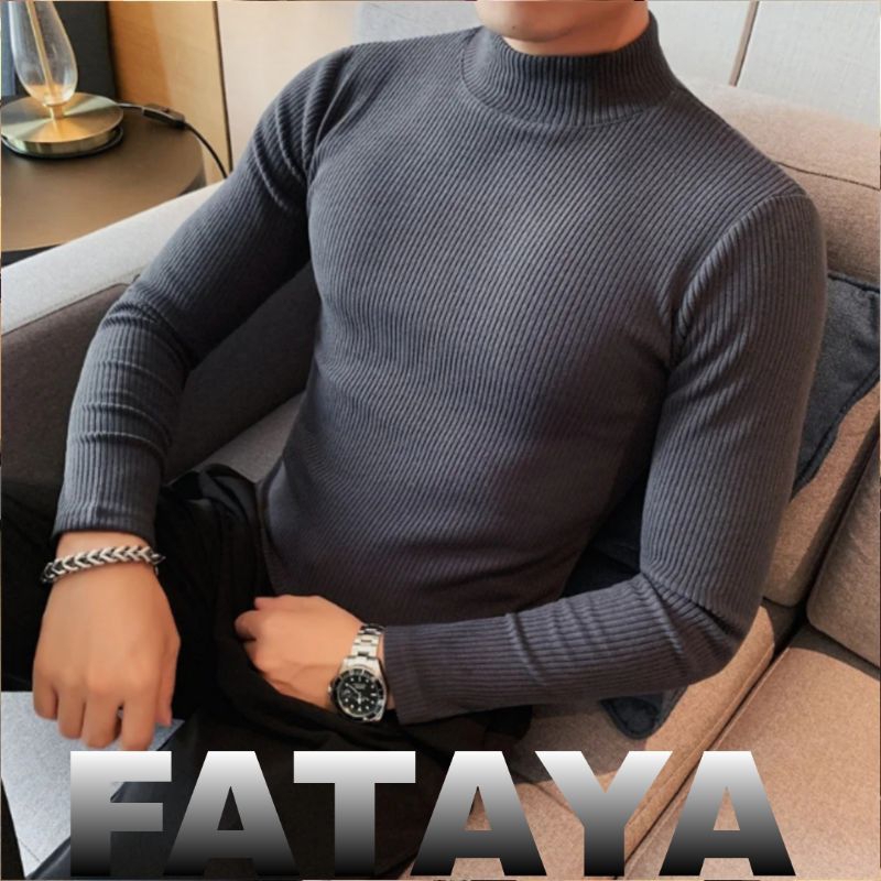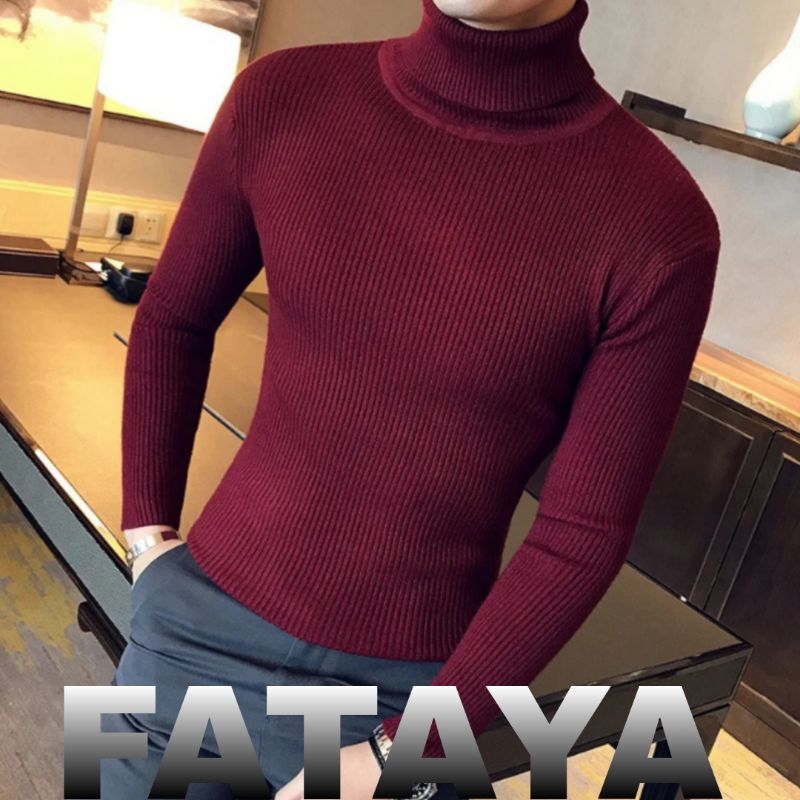 kaos sweater rajut kerah turtleneck premium unisex wanita pria M L XL