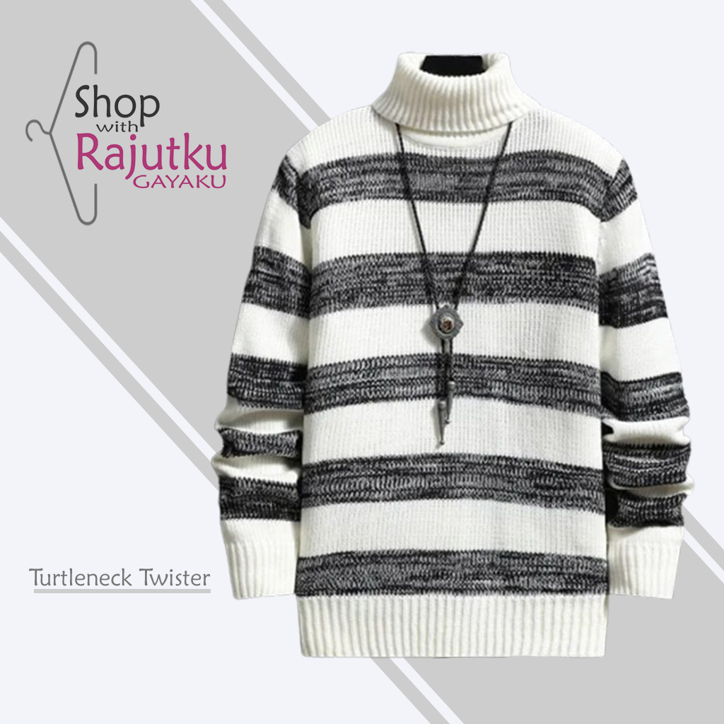 Sweater Rajut Kerah Tinggi Twister Lengan Panjang Turtleneck Pria Korean Style Premium Quality