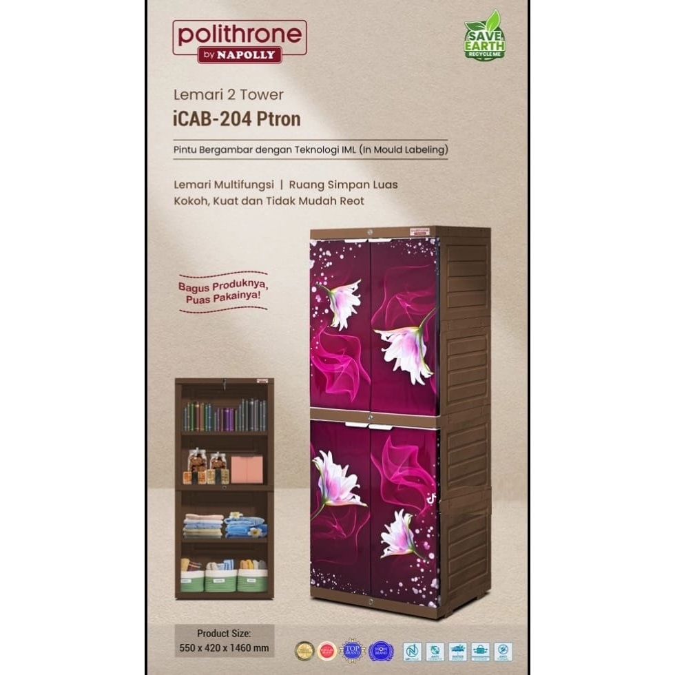 Lemari Pakaian Plastik NAPOLLY 4 Susun MURAH KUAT TEBAL Bunga Ungu iCAB 204 Ptron TEAK WOOD KUNCI